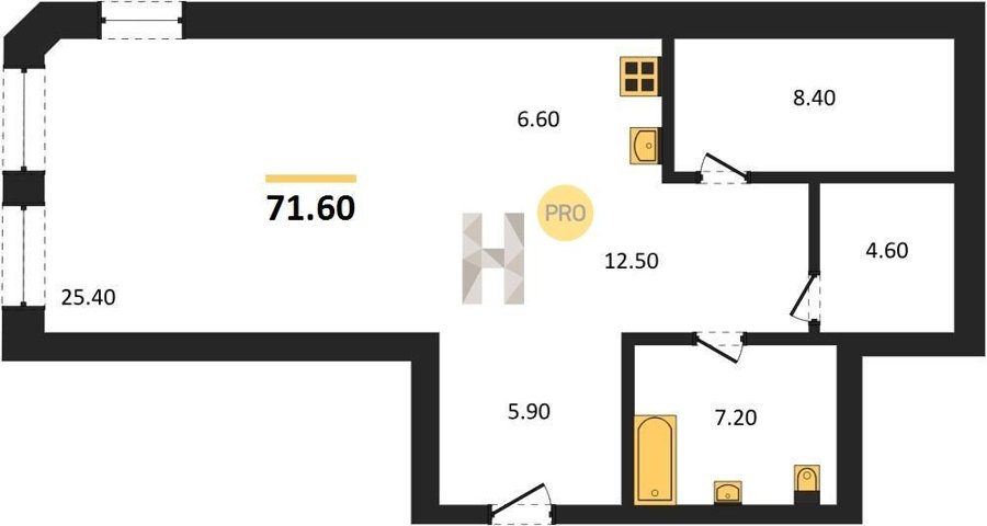 Площадь от 60.7 м2